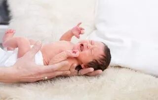 啼哭声较轻,无泪,大多在睡醒时或吃奶后啼哭;哭的同时,两腿蹬被。为TA换上一块干净的尿布,抱一抱,宝宝就不哭了。
